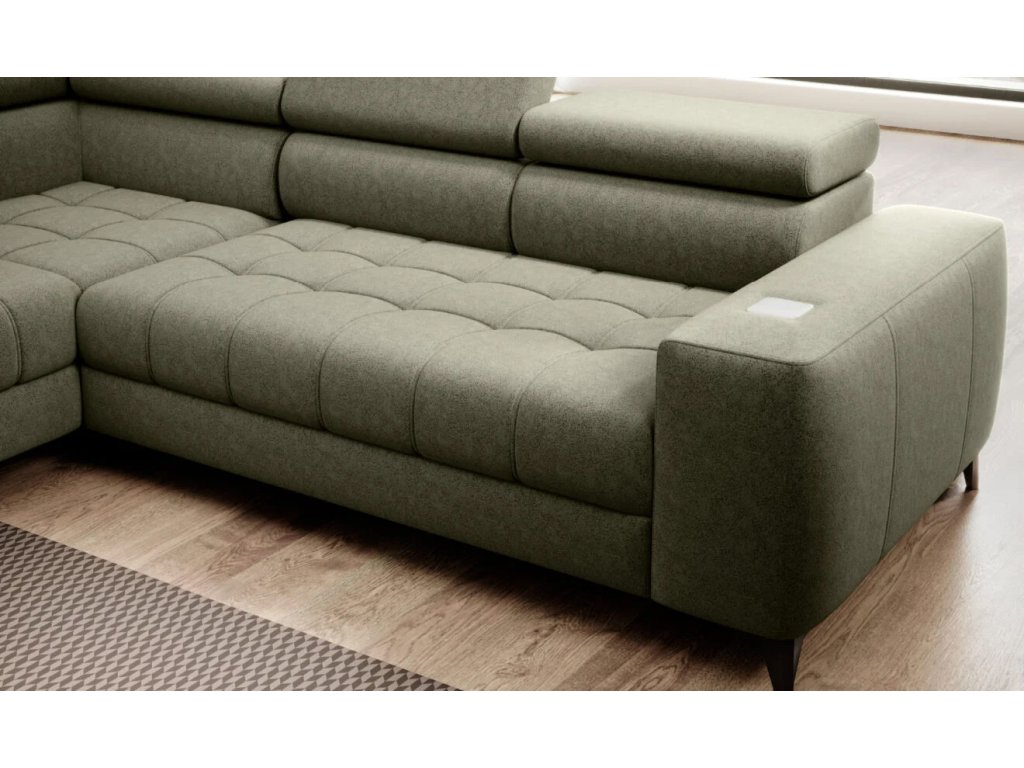 Elegantná a funkčná rohová sedačka, ktorá sa skvele hodí do každej obývačky. Vďaka jednoduchej línii a jemnému šitiu vyzerá nábytok mimoriadne pôsobivo. Astola je vybavená pohyblivými opierkami hlavy, ktoré vám umožňujú prispôsobiť si opierku vašim individuálnym potrebám. Vďaka funkcii spánku je ideálny pre denný aj nočný odpočinok. Vo veľkej priehradke, ukrytej v otomanu nábytku, môžete uložiť extra súpravu posteľnej bielizne. Doplnkom k rohovej pohovke je určite indukčná nabíjačka umiestnená v lakťovej opierke.