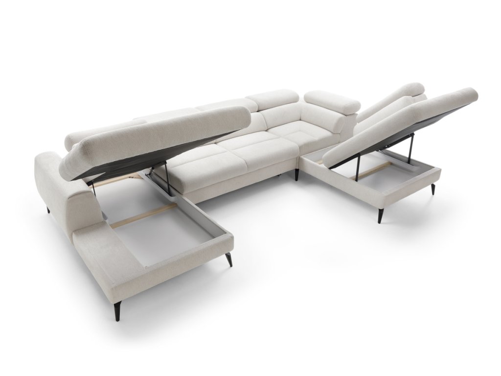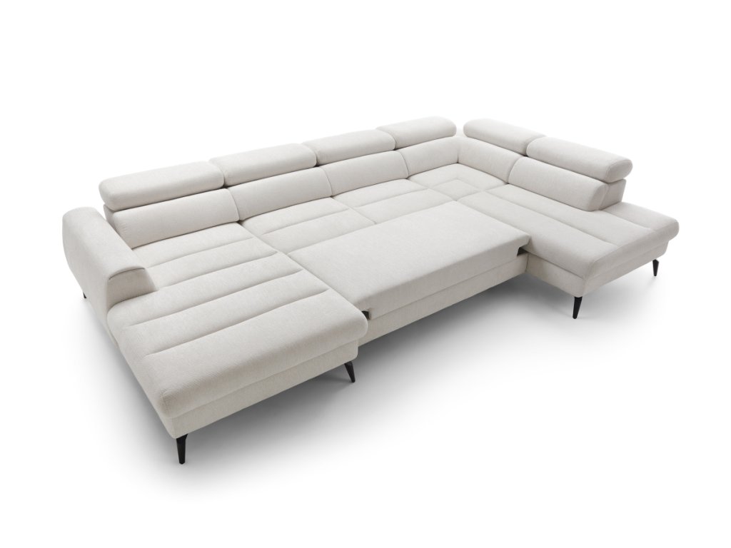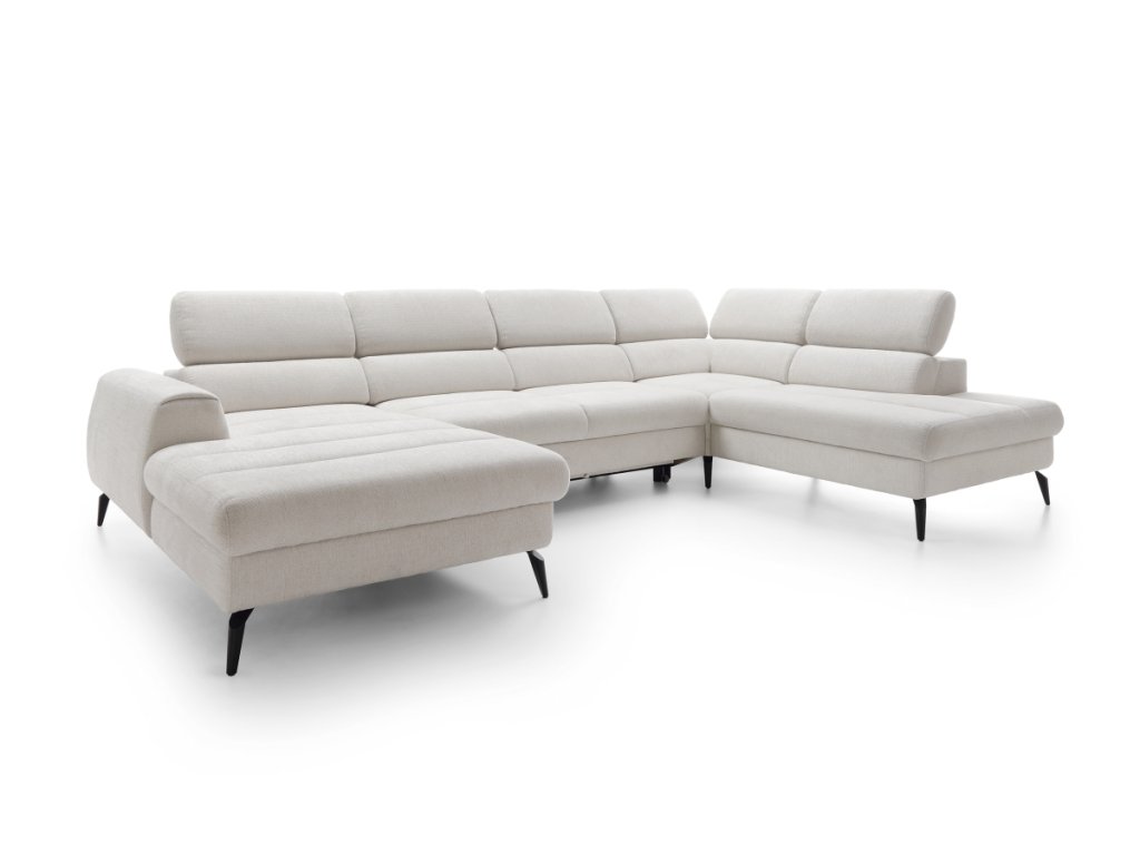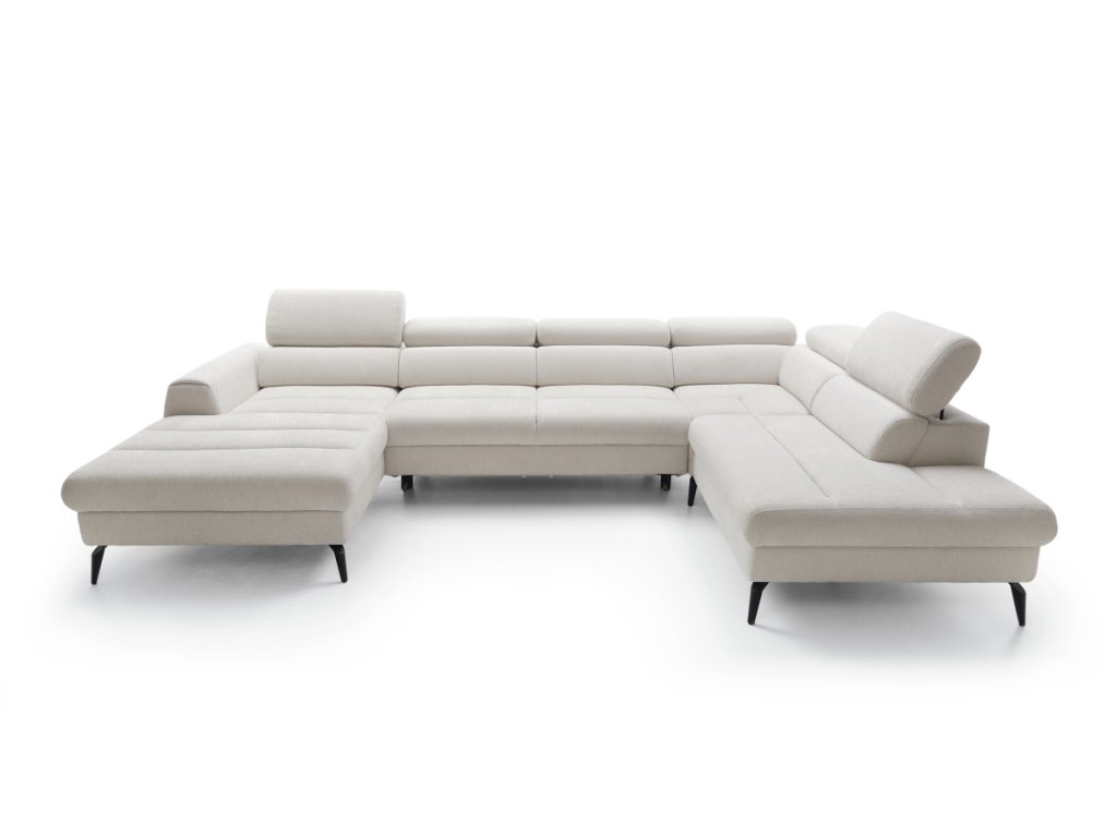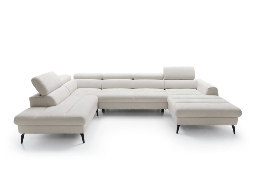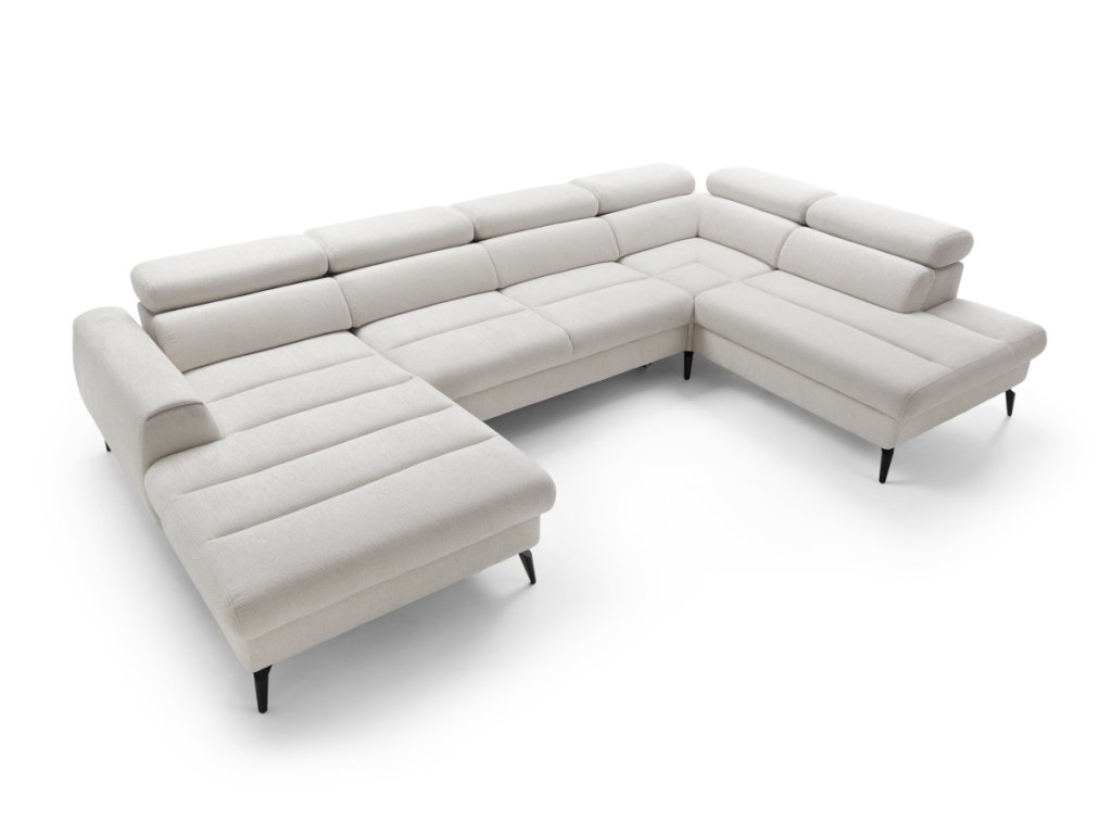 Moderná, kvalitná, účková sedacia súprava JAZZ U2 - celočalúnená štýlová sedačka v trendovom dizajne, ktorá uspokojí hlavne vyznavačov pohodlia a originálneho moderného interiéru. Sedacia súpravá je rozkladacia s úložným priestorom a nastaviteľnými opierkami na hlavu, vo vnútri sedenia je vlnovcová pružina s kvalitnou PUR penou. Je možné objednať ľavé alebo pravé prevedenie.