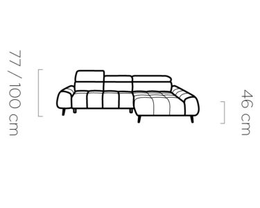 Jedná sa o rohovú sedačku navrhnutú v súlade s najnovšími trendmi. Masívne a pohodlné sedadlo zvýraznené hlbokým prešívaním dodáva nábytku originálny a nevšedný vzhľad. Kvalitu používania zvyšujú nastaviteľné opierky hlavy, ktoré umožňujú nastavenie uhla sklonu. Použitie dlhých vložiek umožňuje vytvoriť pohodlnú plochu na spanie. Ďalšou výhodou je nádoba ukrytá v otomanu, kde môžete uložiť vankúše alebo teplú deku.