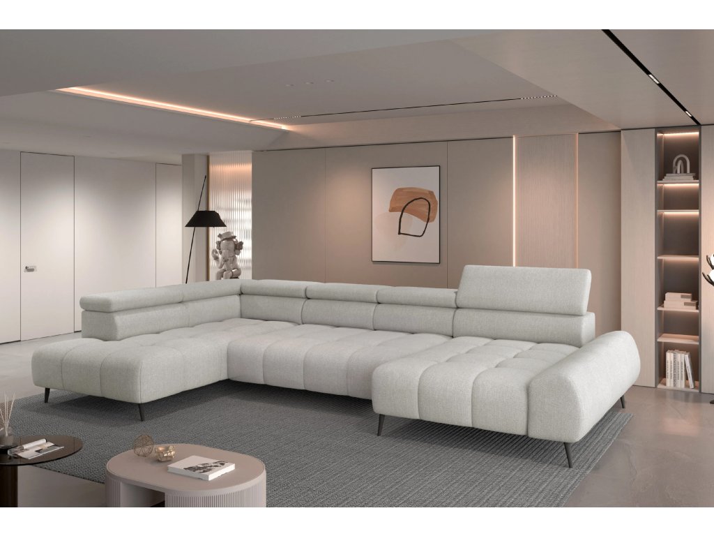 Jedná sa o rohovú sedačku navrhnutú v súlade s najnovšími trendmi. Masívne a pohodlné sedadlo zvýraznené hlbokým prešívaním dodáva nábytku originálny a nevšedný vzhľad. Kvalitu používania zvyšujú nastaviteľné opierky hlavy, ktoré umožňujú nastavenie uhla sklonu. Použitie dlhých vložiek umožňuje vytvoriť pohodlnú plochu na spanie. Ďalšou výhodou je nádoba ukrytá v otomanu, kde môžete uložiť vankúše alebo teplú deku.
