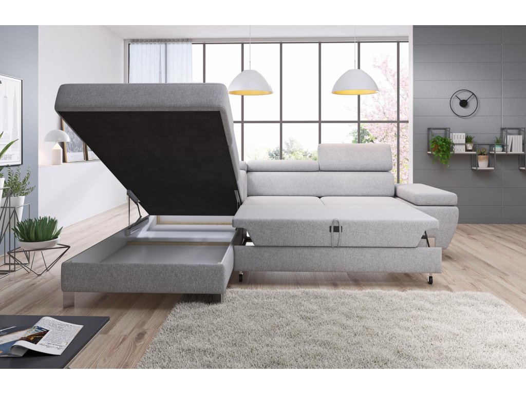 - rohová, pružinová sedacia súprava v modernom dizajne.