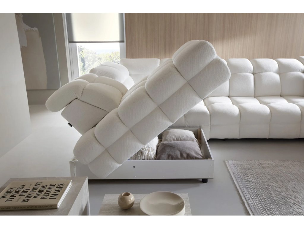 Jedná sa o rohovú sedačku navrhnutú v súlade s najnovšími trendmi. Masívne a pohodlné sedadlo zvýraznené hlbokým prešívaním dodáva nábytku originálny a nevšedný vzhľad. Kvalitu používania zvyšujú nastaviteľné opierky hlavy, ktoré umožňujú nastavenie uhla sklonu. Použitie dlhých vložiek umožňuje vytvoriť pohodlnú plochu na spanie. Ďalšou výhodou je nádoba ukrytá v otomanu, kde môžete uložiť vankúše alebo teplú deku.